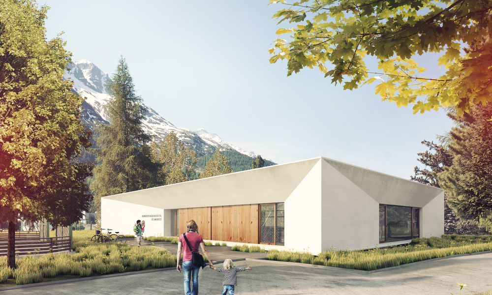 A small pavilion in the finish area was designed for the legendary Cresta Run in St. Moritz. The final curve embraces the structure, here athletes are intercepted and finish the ride. The concept is a pavilion dressed in local wood with an open front. An ideal place for athletes and workers who are staying in the finishing area. They can enjoy the warmth of the fireplace or stay on the newly created terrace. The open minimalistic concept is designed for movement and organisation in the finishing area, because athletes are only shortly gathering in this area.